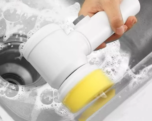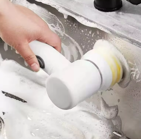 Pressione o botão para que a esponja ou a escova gire. Após usar este produto, enxágue o detergente com água.