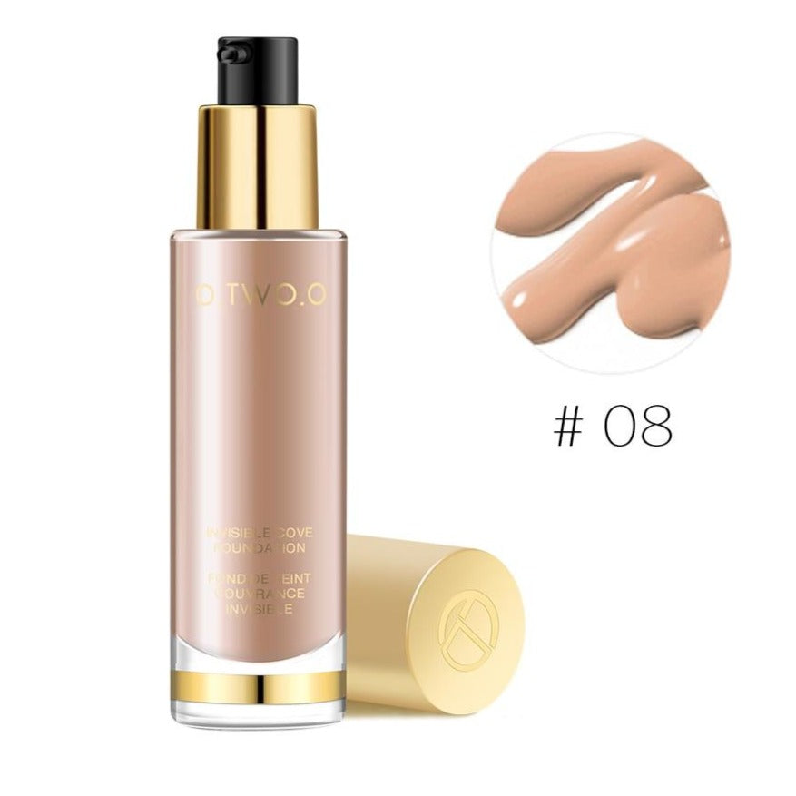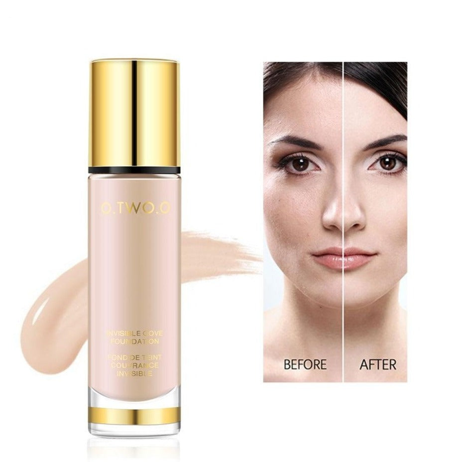 (1)Base Facial Líquida O.TWO.O Alta Cobertura é livre de óleo e não escorre, com duração de horas, se manterá maquiada por todo o dia, tem poder corretivo, de alta cobertura, cobrindo poros Não tem medo de alta temperatura, excelente efeito de controle de óleo, de manhã à noite, a maquiagem inferior é tão bonita como sempre!