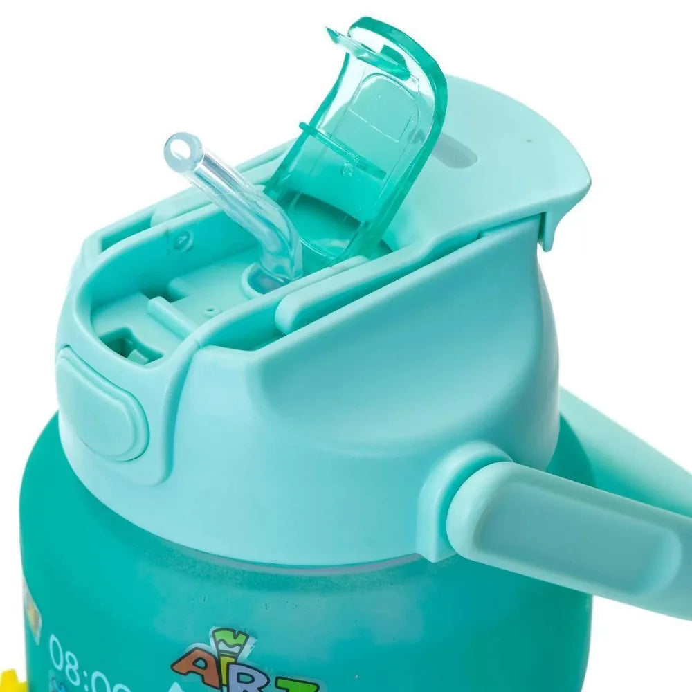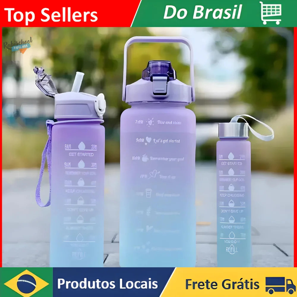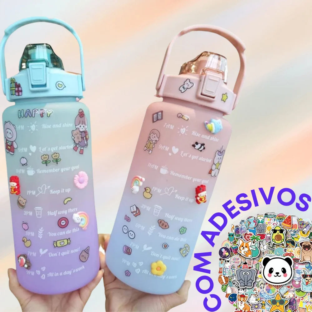 A garrafa possui marcações para que você possa acompanhar o seu consumo de água diário e frases motivacionais.